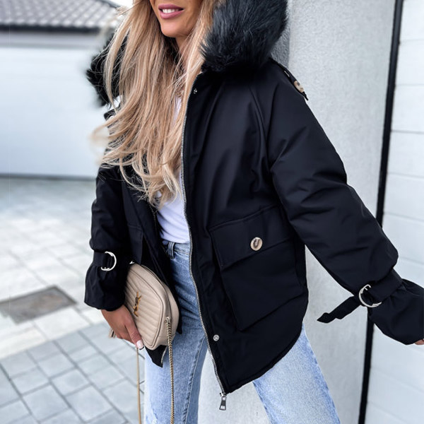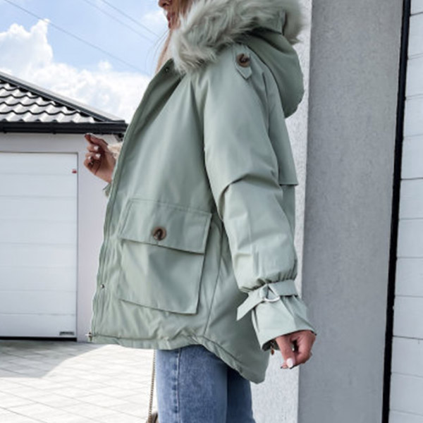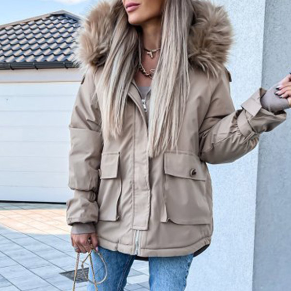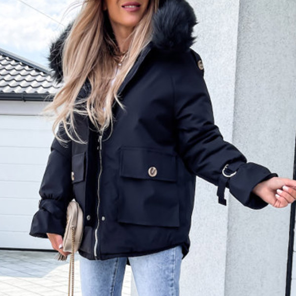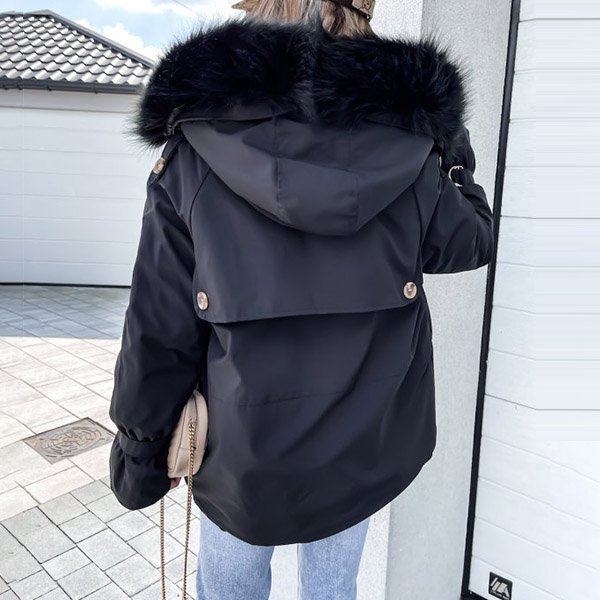 You have no need to worry about the chilly winter days if you have this padded coat in your wardrobe. Solid color style,the faux fur spliced hooded silhouette design will enrich the design style,and the big hand pockets can add its practicability. You can trust in this padded coat to be your wardrobe staple in these cold days.
