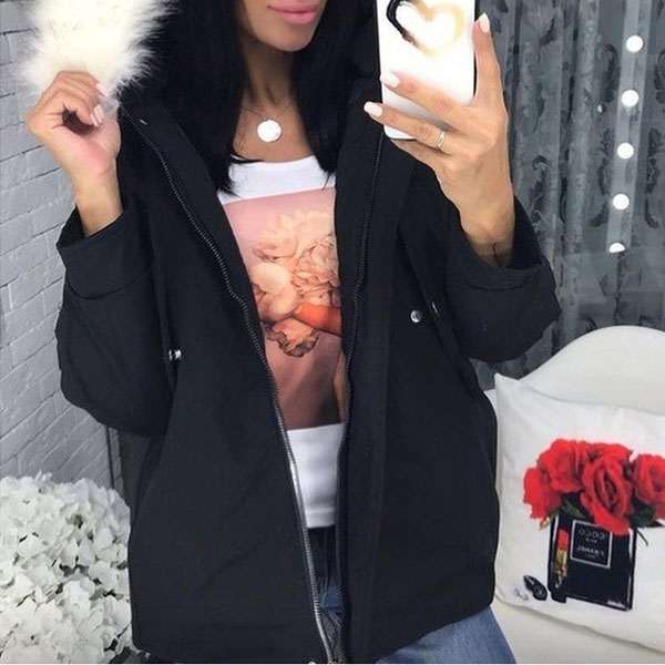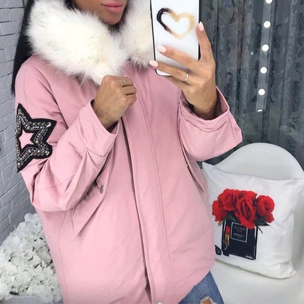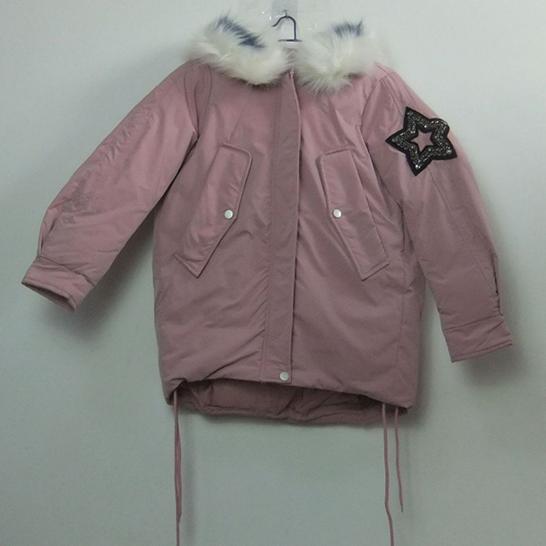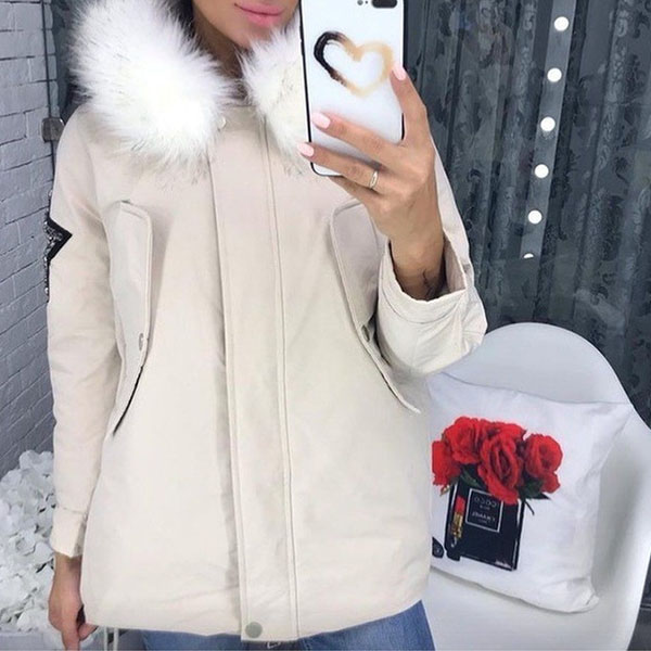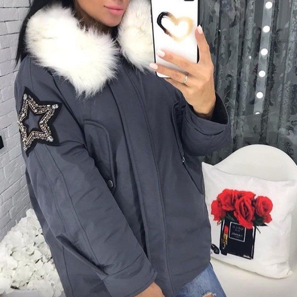 Embrace the cold days with this padded coat. The faux fur spliced design at the hood part will enrich the design style,while the drawstring hem and sequin star pattern design will further enhance its charm. Just slip into this wonderful coat when you feel cold.