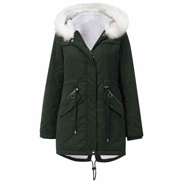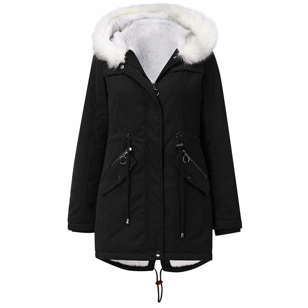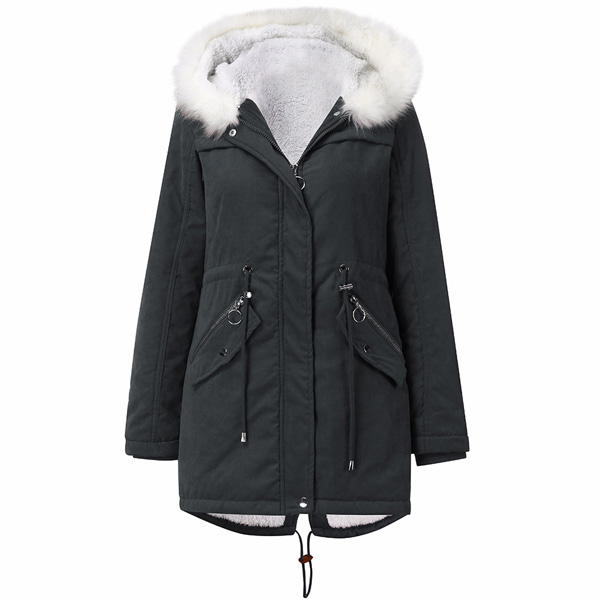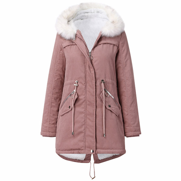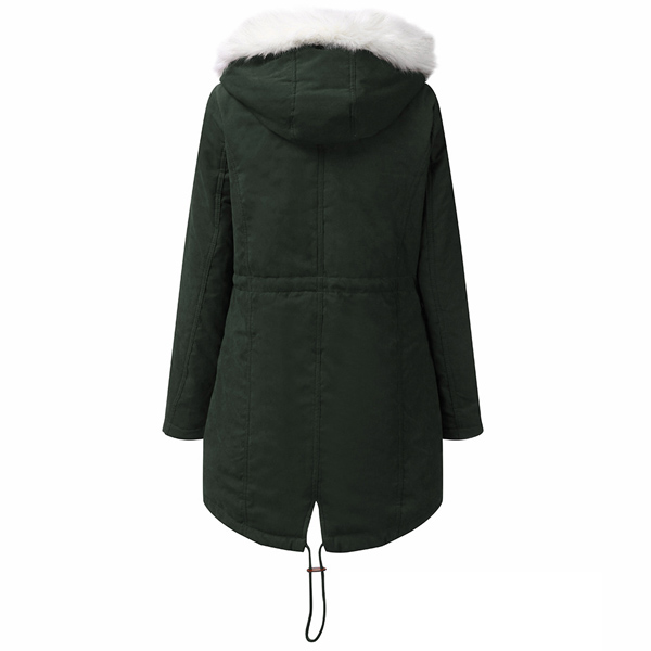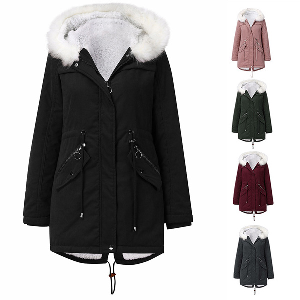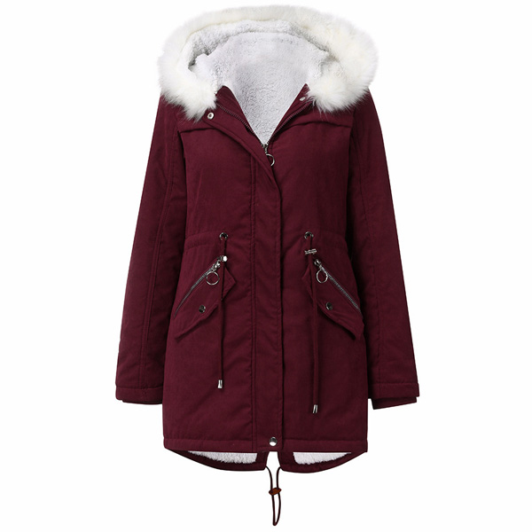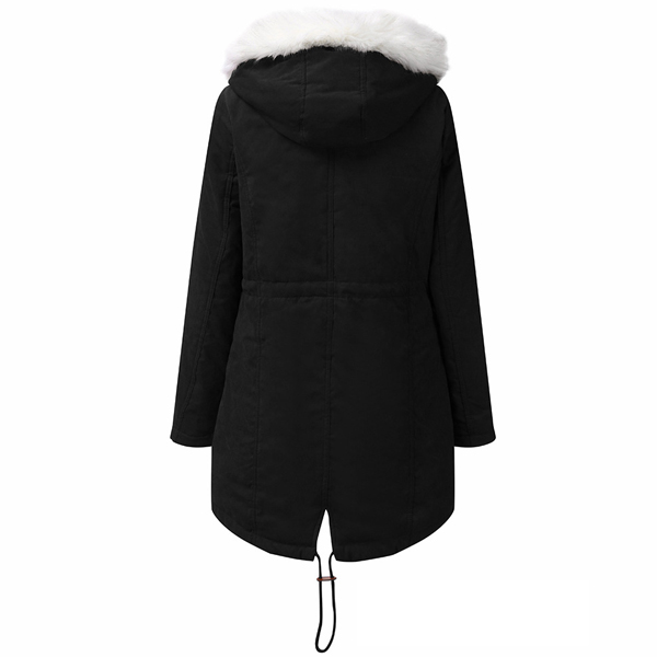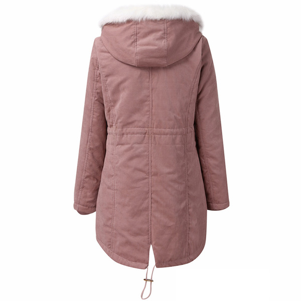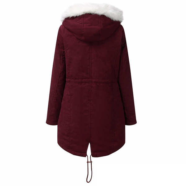 The cold days call for such a cozy and stylish padded coat. Solid color style,the faux fur spliced hooded silhouette and plush lining design can ensure you a warm and comfortable day,while the drawstring design at the waist part can help showcase your figure. You can trust in this padded coat to have a wonderful winter!