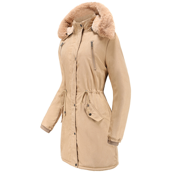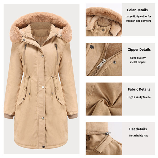 When the chilly winter season hits,this padded coat is worth to have a place in your wardrobe. The faux furs spliced hooded silhouette and plush lining design can keep you warm all the day,while the clean and fit silhouette still can showcase your slender figure. It is worth to be your wardrobe staple in these cold days.