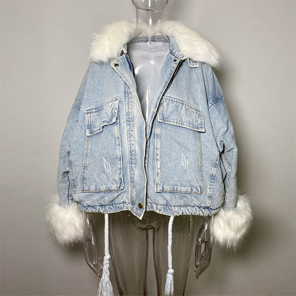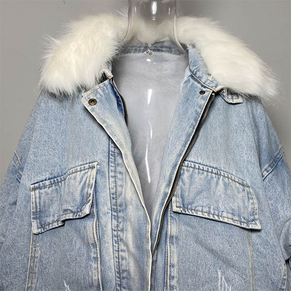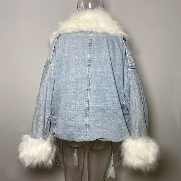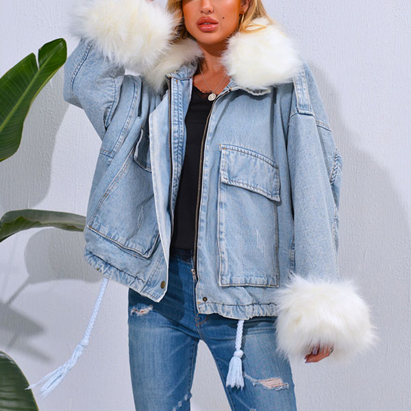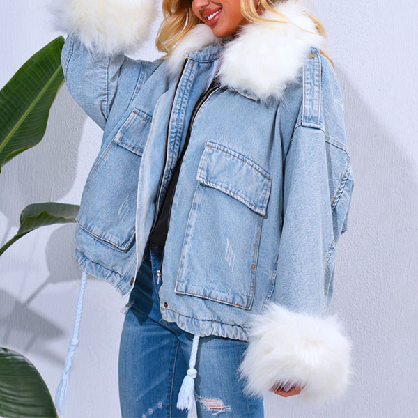 When the days get cold,you can just slip into this denim coat to stay warm while maintaining your style. The faux fur spliced cuff and collar design can easily enhance its entire charm,and the big pockets design will further enhance its charm. It is worth to be your wardrobe staple in the chilly days.