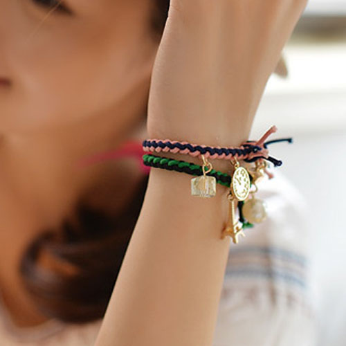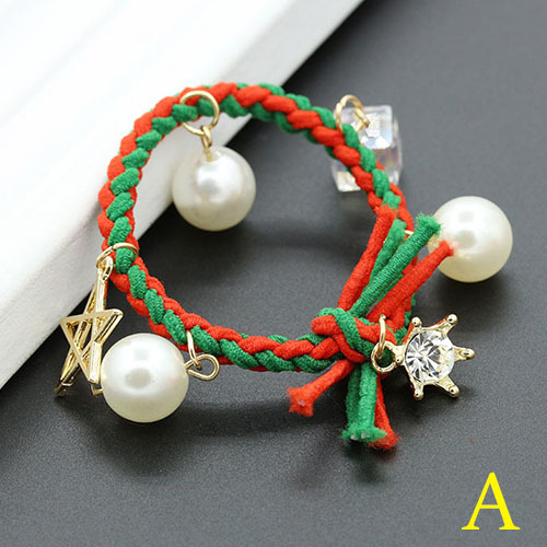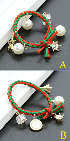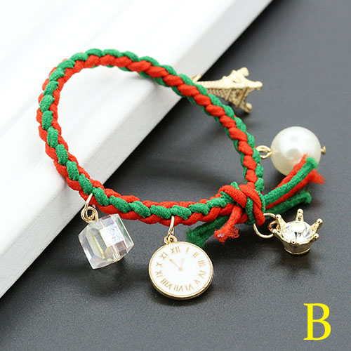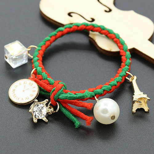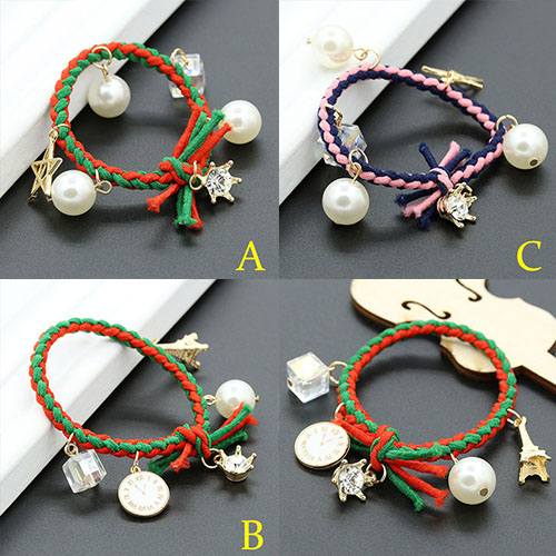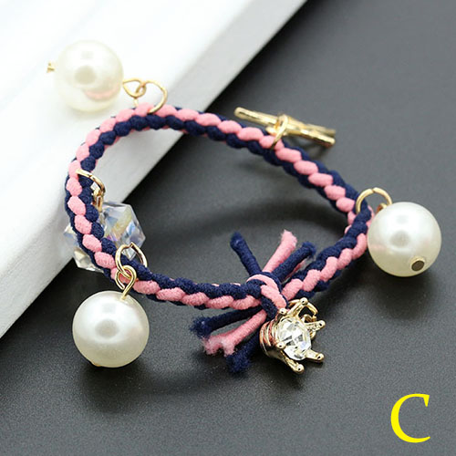 This constract color hair tie with various charms, including faux pearl,faux gems,