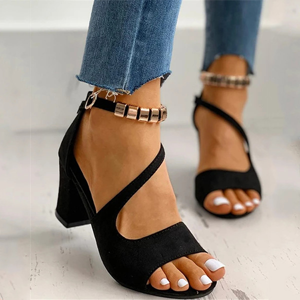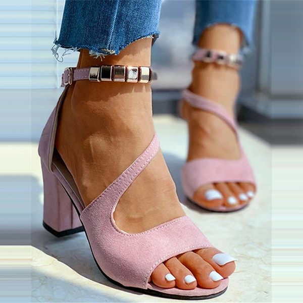 Fashion Faux Suede Ankle-Strap Open-toe Block Heels