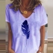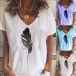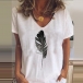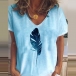 Fashion Feather Printed Short Sleeve V-neck T-shirt
