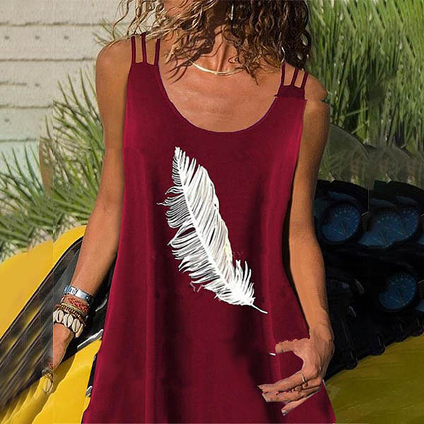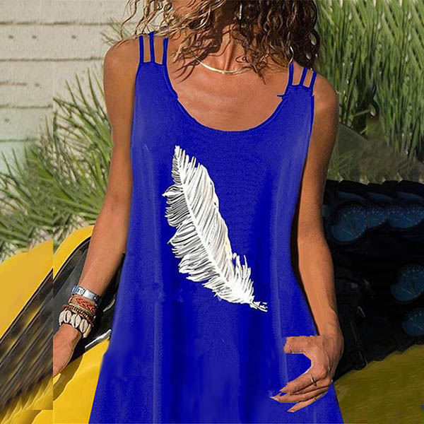 Fashion Feather Printed Sleeveless Round Neck Dress