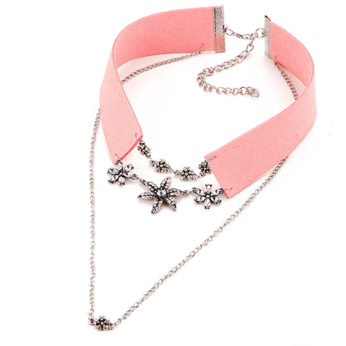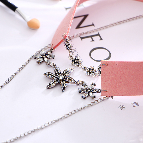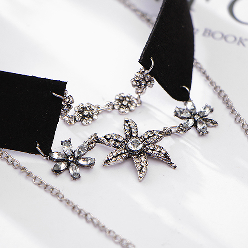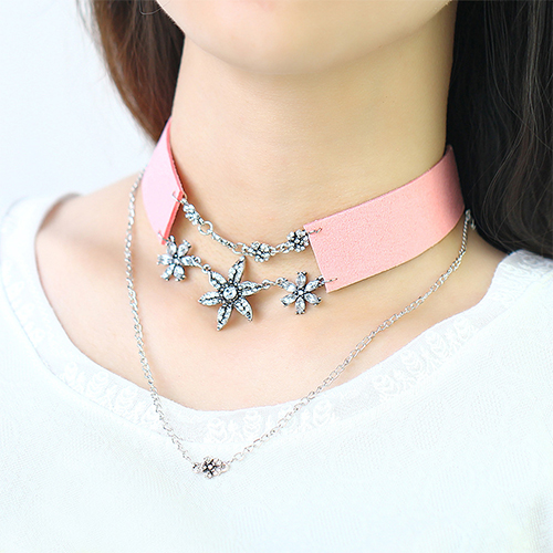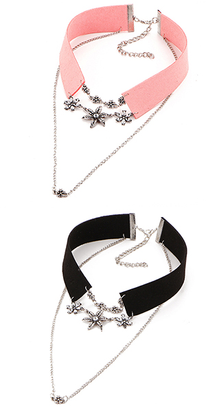 The pendant necklace is equipped with multilayer design and rhinestone flower