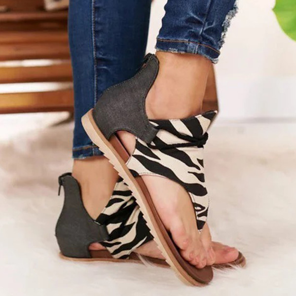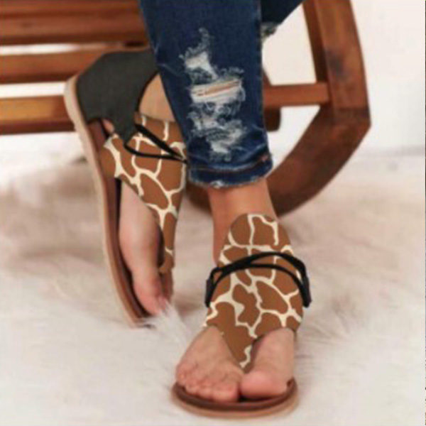 Fashion Flat Heel Leopard Printed Thong Sandals