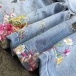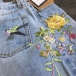Fashion Floral and Bird Embroidery Light Blue Skinny Jeans