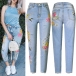 5-pocket jeans in washed stretch denim. Mid waist, zip fly with button, and slim legs. The floral and bird embroidery add some chic and stylish elements to these jeans. Perfect team with any kind of shirt for a casual daily look!