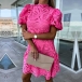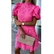 This dress combines feminine charm with a touch of elegance. The floral crochet lace detailing adds a delicate and intricate texture, creating a romantic and beautiful look. The mock neck enhances the neckline, adding a sophisticated touch. The short sleeves provide comfort and a stylish aesthetic. Multi-colors avaible.