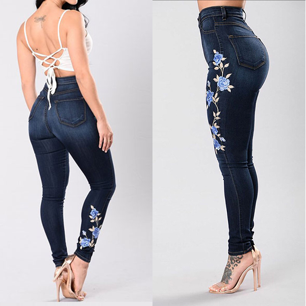 Fashion Floral Embroidered High-rise Skinny Jeans