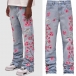 Fashion Floral Embroidered High-rise Straight-cut Old-washed Denim Jeans for Men
