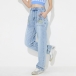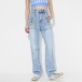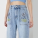 Fashion Floral Embroidered High-rise Straight-cut Old-washed Denim Pants