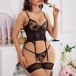 Fashion Floral Embroidered Three-piece Lingerie Set
