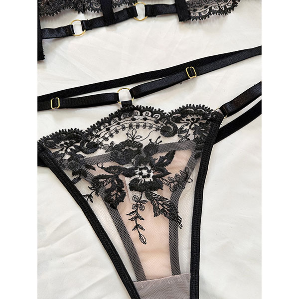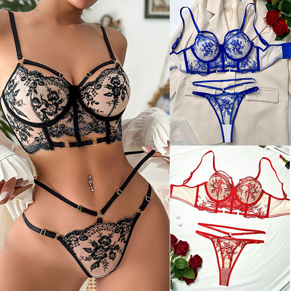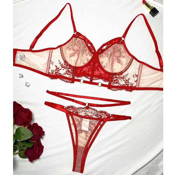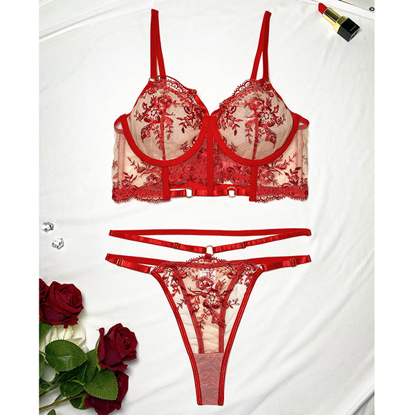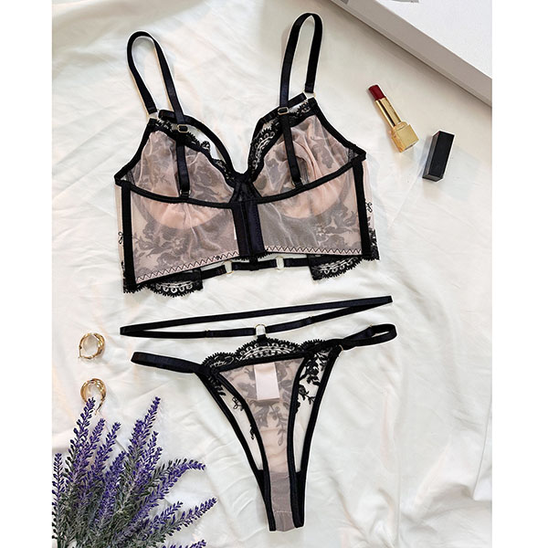 Fashion Floral Embroidered Two-piece Lingerie Set