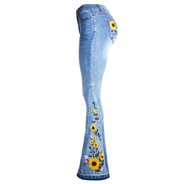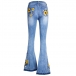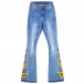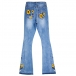 Fashion Floral Embroidered Wide-leg Old-washed Denim Jeans