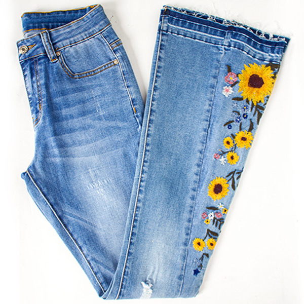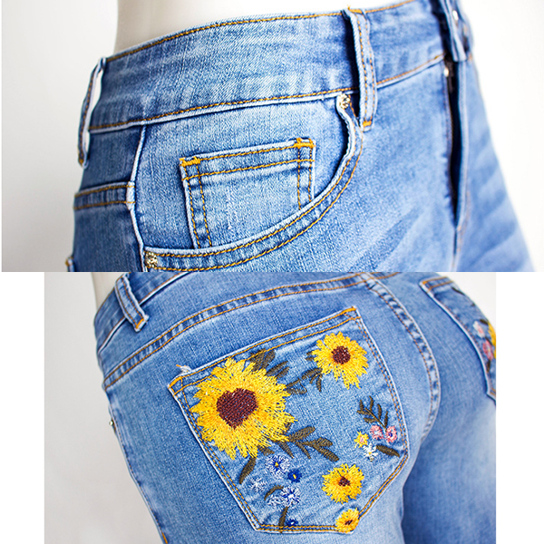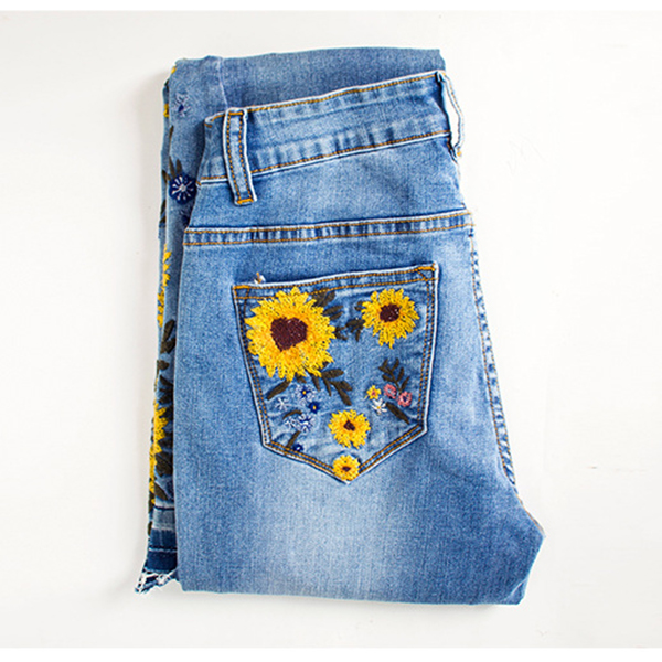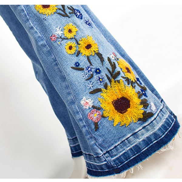 These jeans feature delicate floral embroidery with relaxed wide-leg silhouette and authentic old-washed finish for bohemian contemporary sophistication. The floral embroidery brings romantic charm. perfect for daily wear.