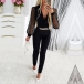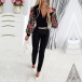 Fashion Floral Embroidery Gauze Spliced Long Sleeve V-Neck Chain Jumpsuit