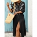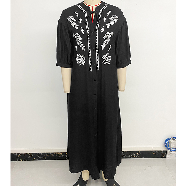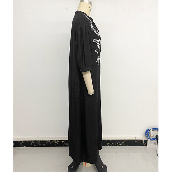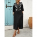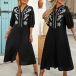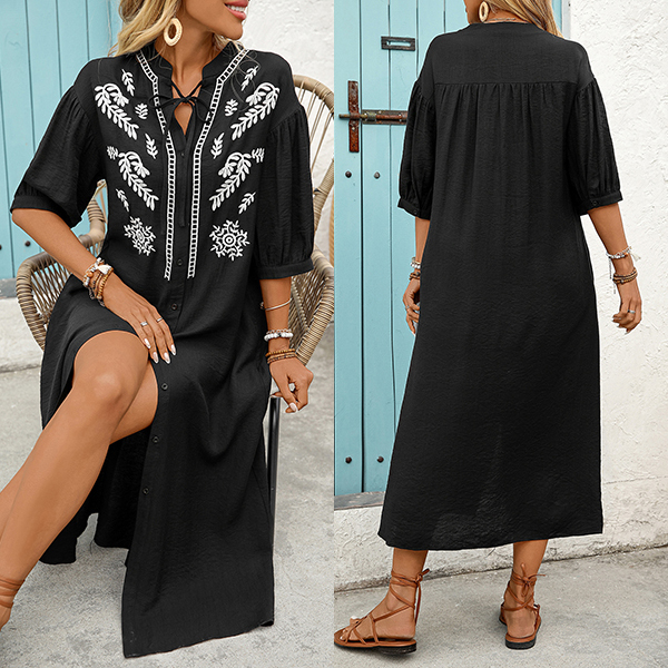 Exude elegance and charm with this fashion dress! This dress features a flattering V-neckline, delicate floral embroidery, stylish elbow sleeves, and a chic front slit. Perfect for daily wear.