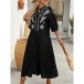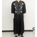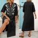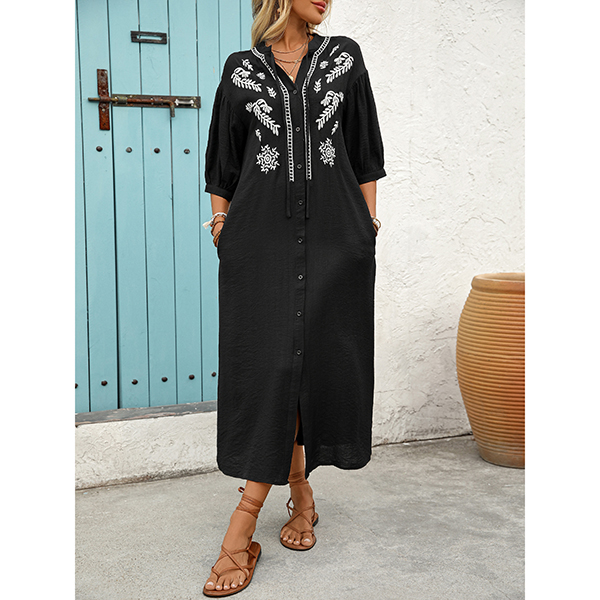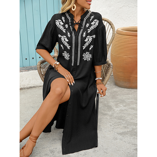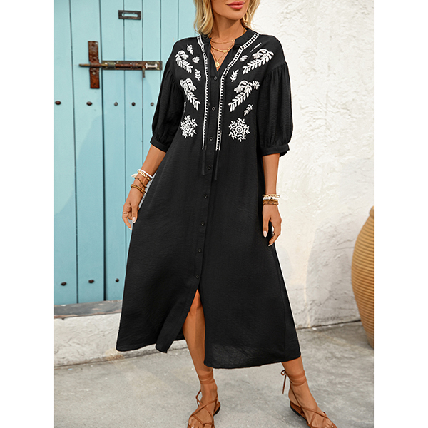 Fashion Floral Embroidery V-neck Elbow Sleeve Front Slit Dress