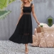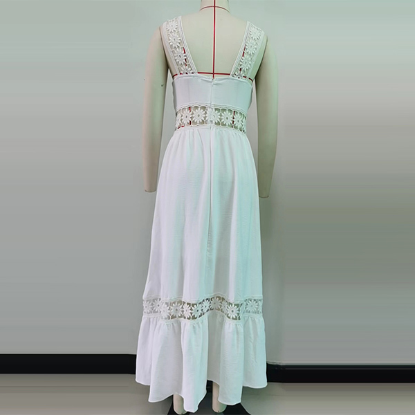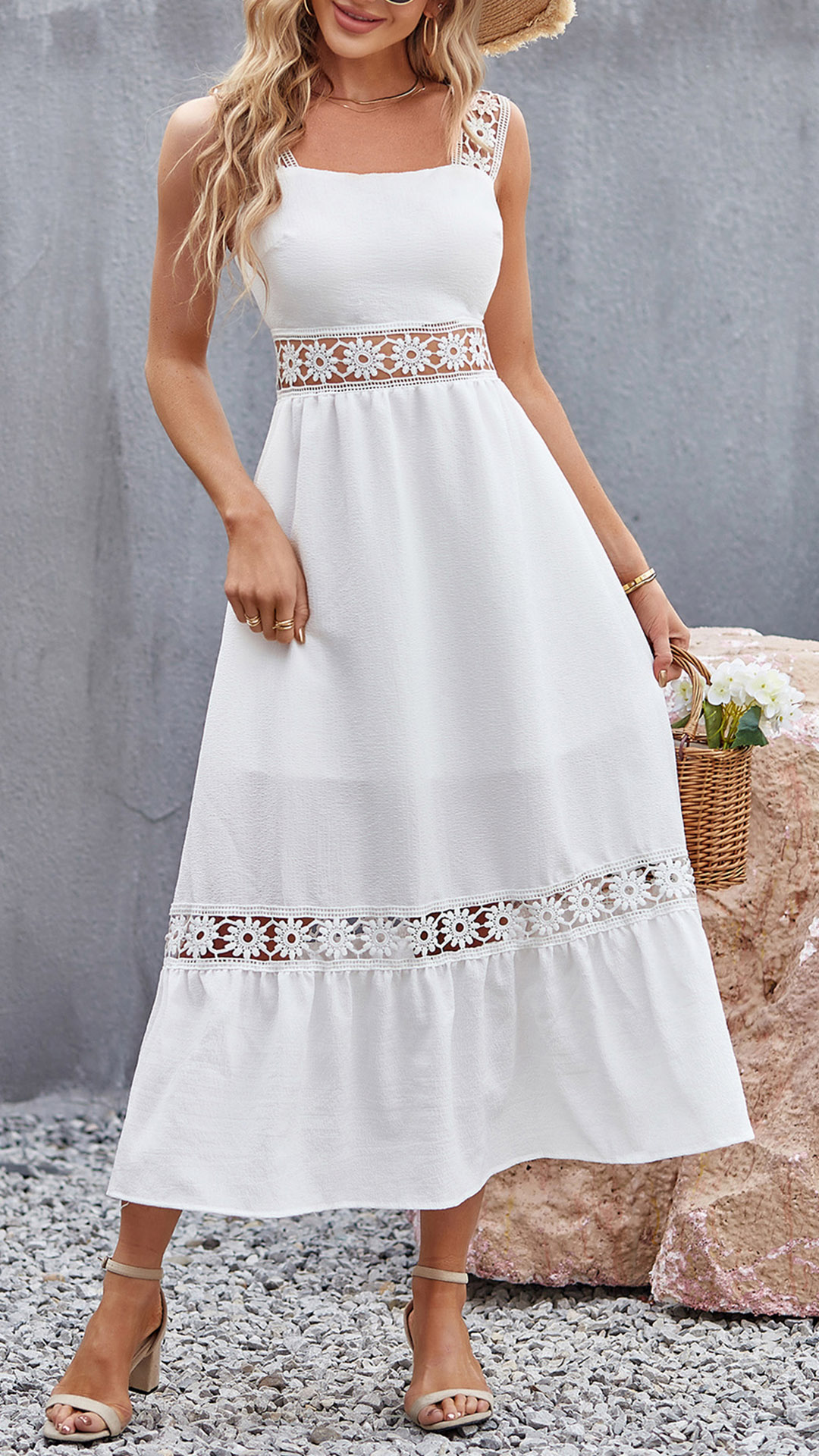 Fashion Floral Hollow Out Square Neck Midi Dress