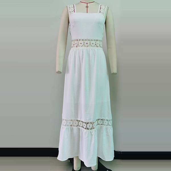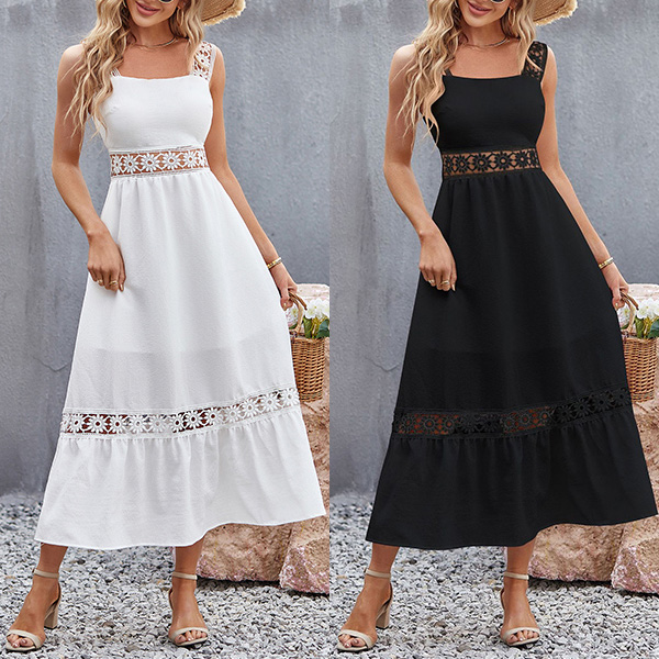 How about this dress? It features a beautiful floral pattern with intricate hollow-out details, creating a delicate and feminine look. White and black, which one do you like?