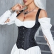 Crafted from exquisite floral jacquard fabric, this tank top corset showcases intricate patterns and delicate details that add a touch of elegance. The lace-up back allows you to customize the fit to your desired level of comfort and style, while the buckle accents on the front add a hint of edginess and visual interest. This unique and alluring piece combines elements of femininity and edginess to create a stunning and versatile garment.