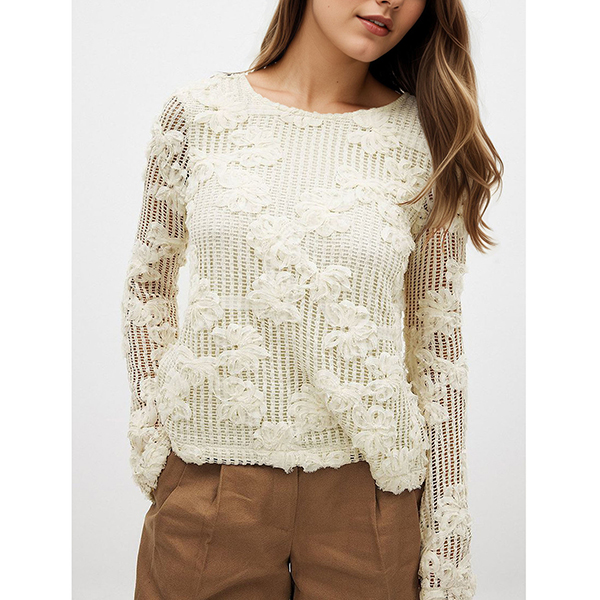 Fashion Floral Jacquard Crew Neck Long Sleeve Knitted Shirt