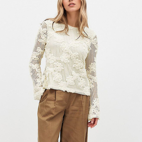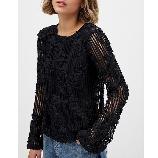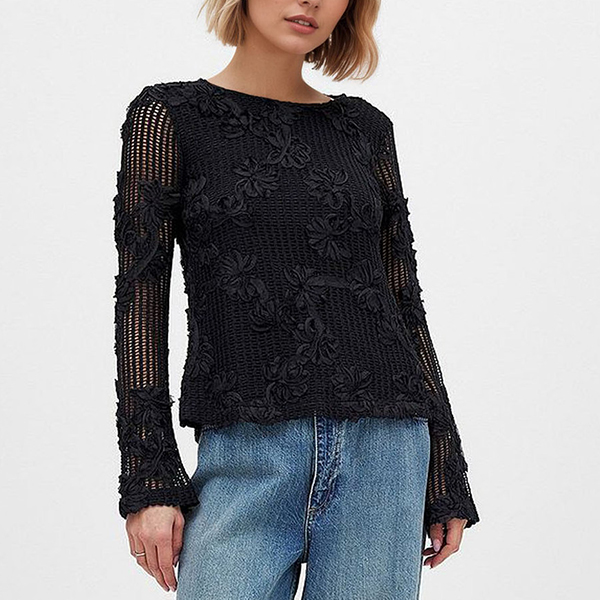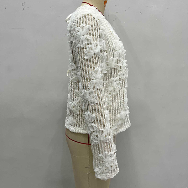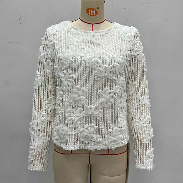 Embrace feminine elegance with this beautifully crafted jacquard knitted shirt featuring an intricate floral pattern that adds romantic charm to your wardrobe. This versatile piece effortlessly bridges casual and dressy occasions - pair it with tailored trousers and a blazer for a polished office look, or style it with a midi skirt and ankle boots for weekend sophistication.
