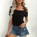 Fashion Floral Jacquard Crew Neck Short Sleeve Shirt