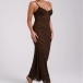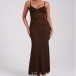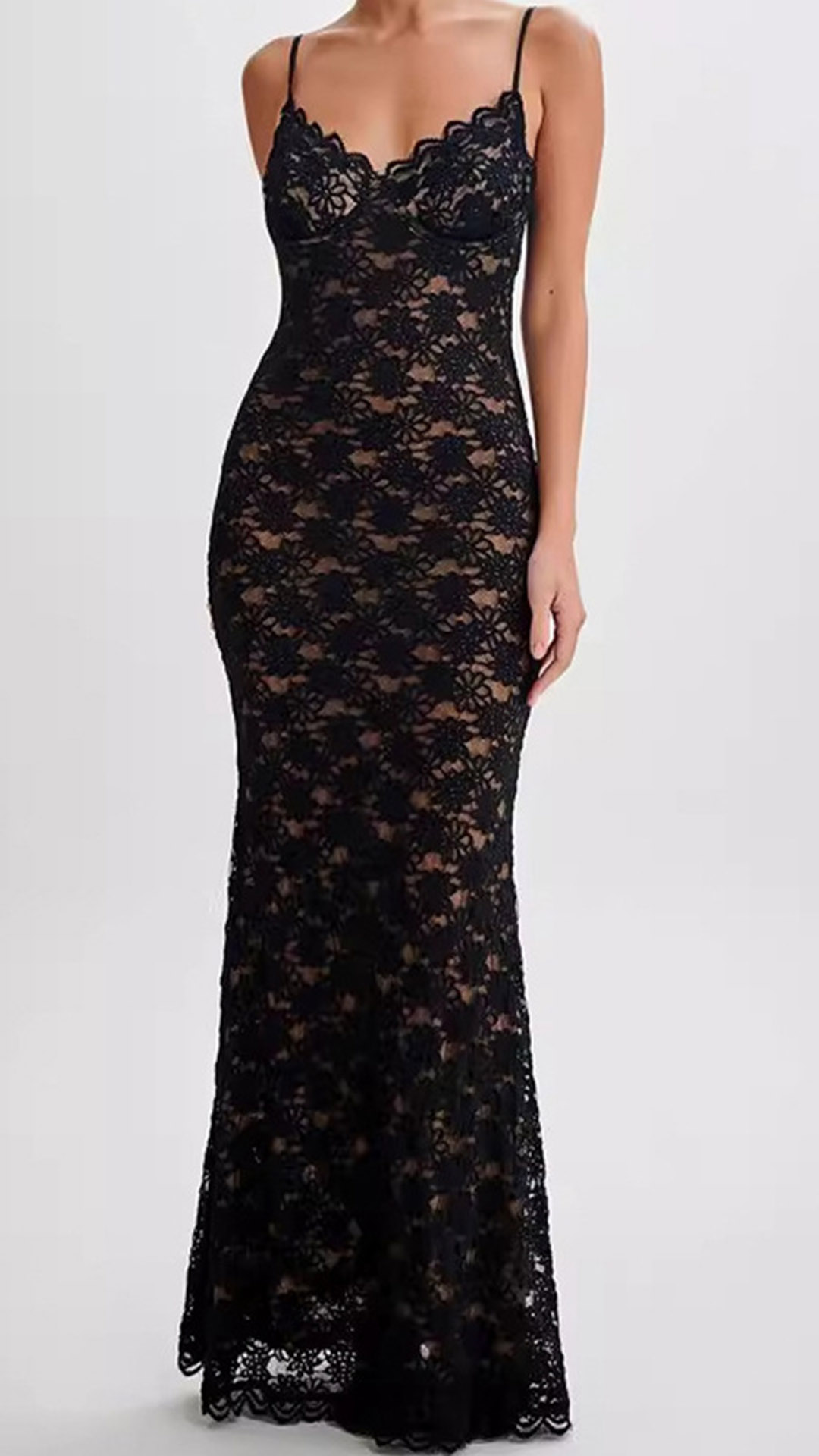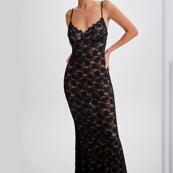 Look at this elegant dress! The delicate lace overlay creates an exquisite, sheer effect, while the adjustable spaghetti straps allow you to customize the fit to your preference. The maxi length lends an undeniably sophisticated and glamorous vibe, perfect for special occasions or formal events. Wanna have one?