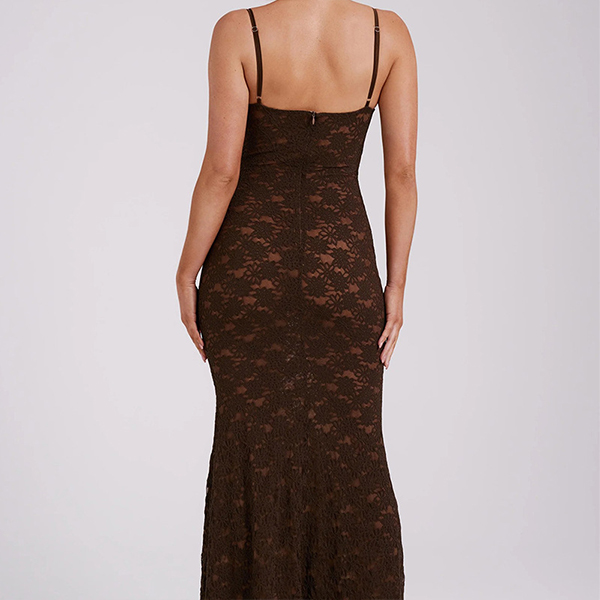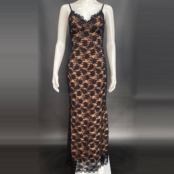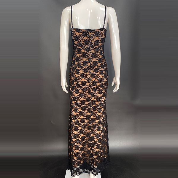 Fashion Floral Jacquard Lace Bodycon Slip Maxi Dress