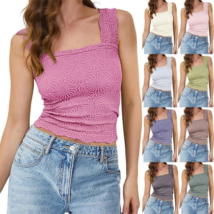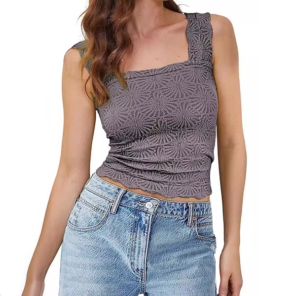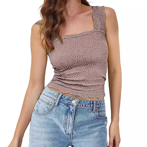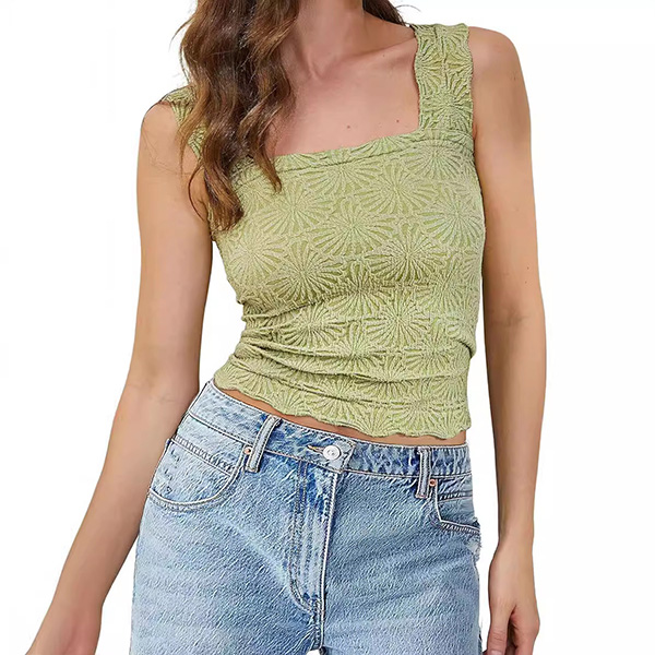 This stylish and contemporary crop top features a floral jacquard pattern, a square neckline, and a cropped silhouette, creating a chic and eye-catching look. Pair with denim shorts or jeans for a fashion street look!
