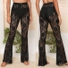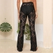 Fashion Floral Jacquard Straight-cut Semi-through Lace Pants