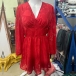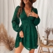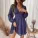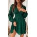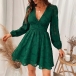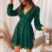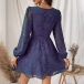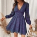 Fashion Floral Jacquard V-neck Long Sleeve Cinch Waist Mini Dress