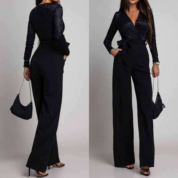 Elevate your wardrobe with this luxuriously textured jumpsuit that celebrates artisanal craftsmanship and botanical beauty. Intricate floral jacquard weaving creates dimensional texture and raised pattern that you can see and feel, adding rich visual interest and tactile sophistication. The flattering V-neckline elongates your silhouette and adds graceful femininity, while long sleeves provide elegant coverage perfect for cooler seasons or transitional weather. A flattering self-tie detail cinches your waist for customizable definition, allowing you to create your ideal hourglass shape. Straight-cut legs deliver timeless, streamlined lines that flow gracefully and create an elongating effect. Perfecet for daily wear.