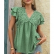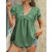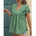 Fashion Floral Lace Spliced V-neck Ruffle Short Sleeve Swiss-dot Shirt