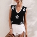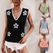 Fashion Floral Pattern Knitted V-neck Sleeveless Vest