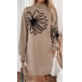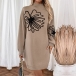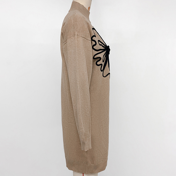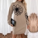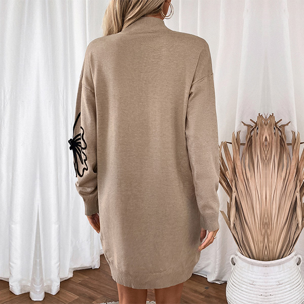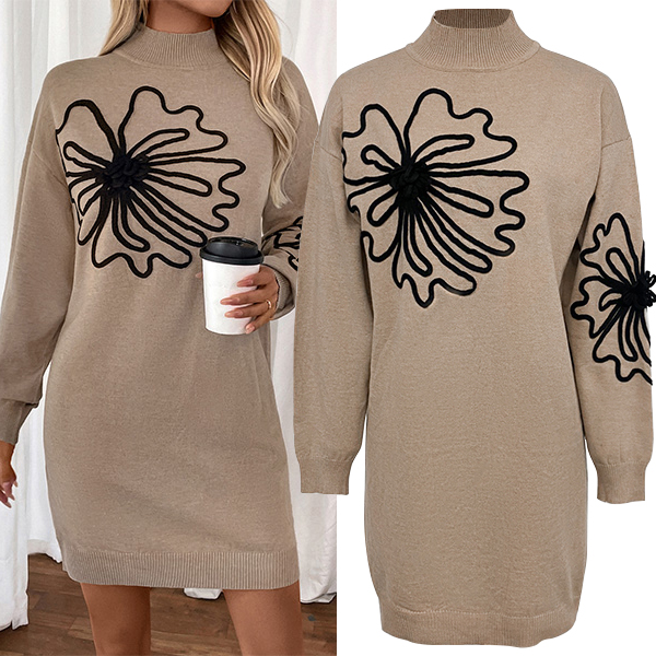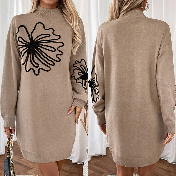 Fashion Floral Pattern Mock Neck Long Sleeve Sweater Dress