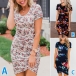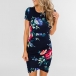 Fashion Floral Prined Round Neck Short Sleeve Irregular Hemline Bodycon Dress