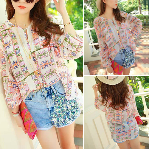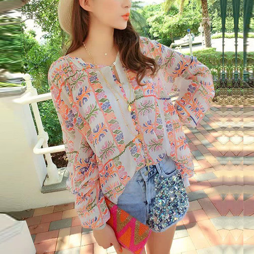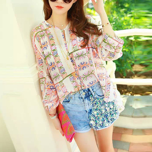 It will make you look stylish and glamorous. Floral print chiffon shirt,with long