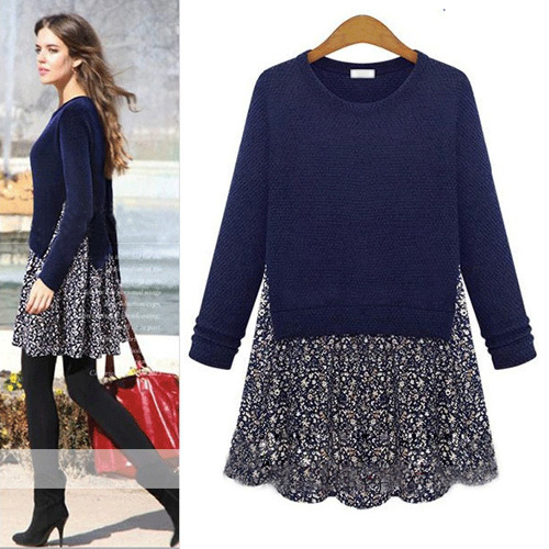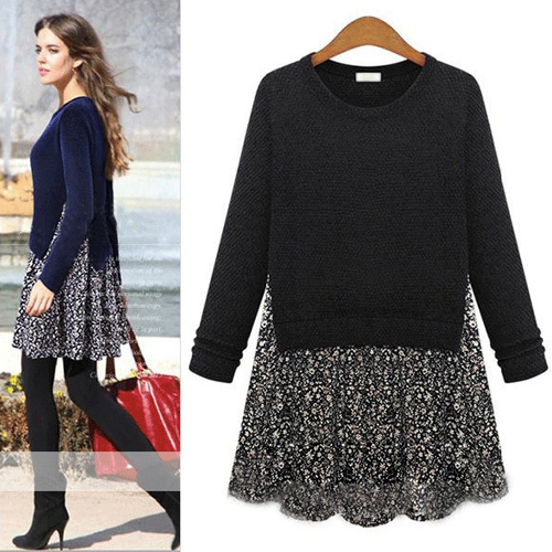 It is really a perfect gift for these a little fat girls. Take this unique dress to show your elegant temperament and chic style. It features fashion round neck and long sleeve design. Unique floral print spliced hemline make it more unique. Pair it with your leggings.