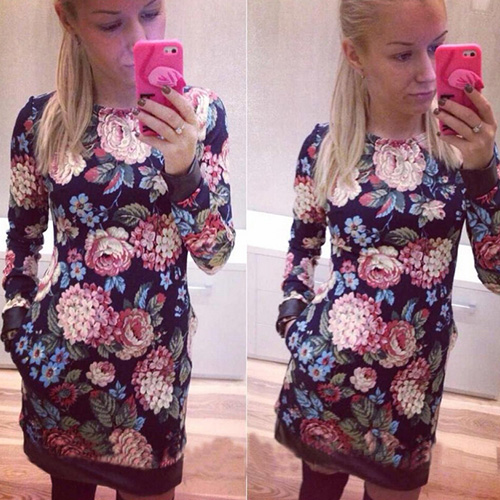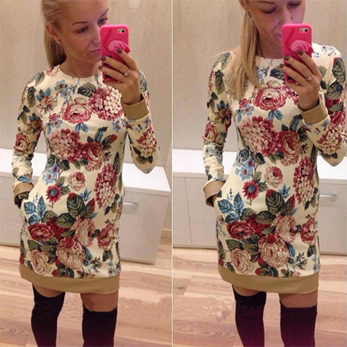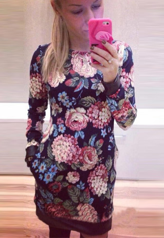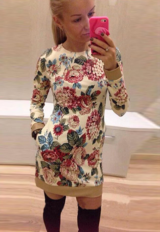 You looks so sweet and stylish in this floral print dress. It features long sleeve,round neck and slim fit design.