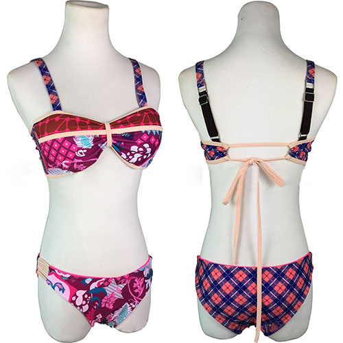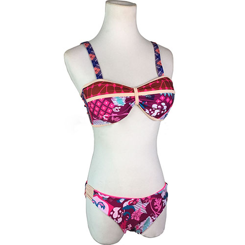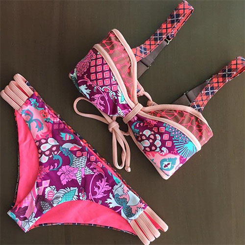 It features floral print, self-tie back and low-rise bottoms. A fun piece that will keep