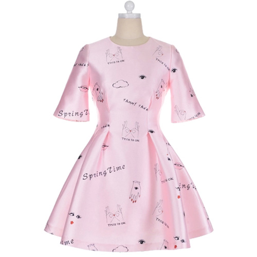 with short sleeve,round neck and high waist design. Your slender figure and charming style will bloom in this dress.