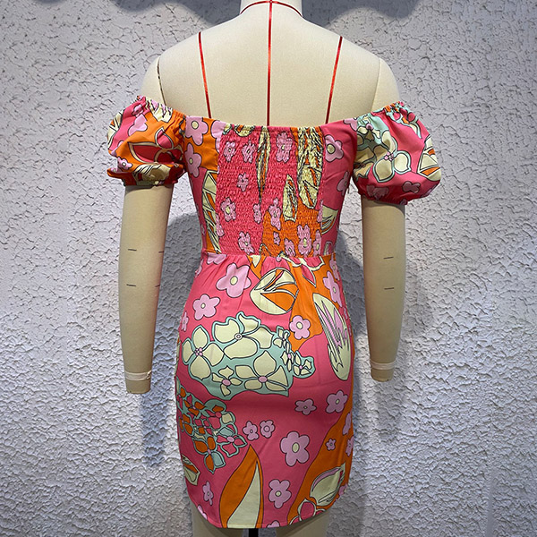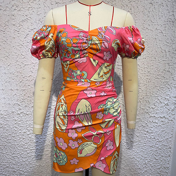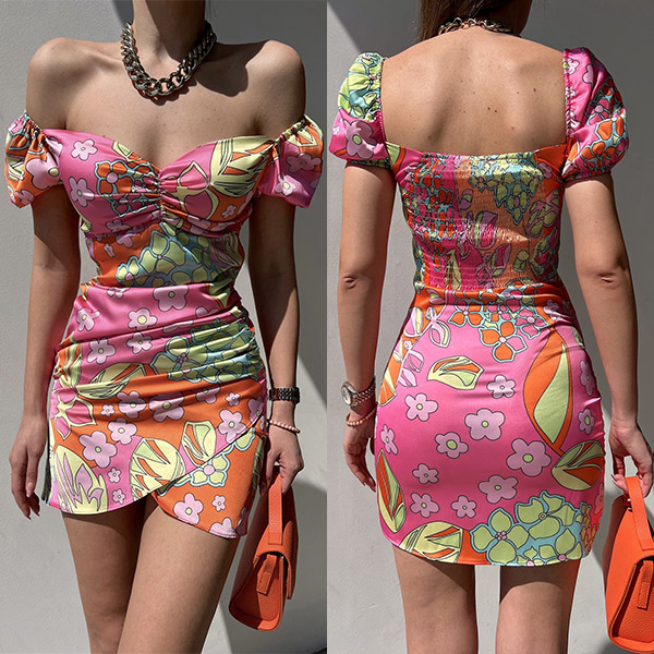 Fashion Floral Print Sweetheart Neck Short Sleeve Irregular Hemline Dress