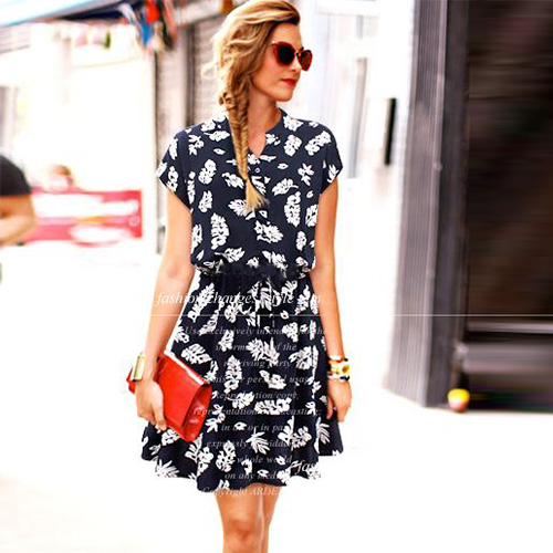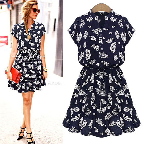 Sweet floral print pattern,with v-neck,short sleeve and elastic waist design.