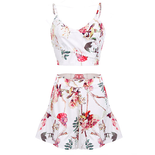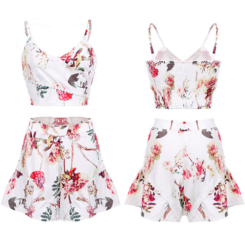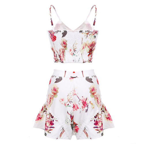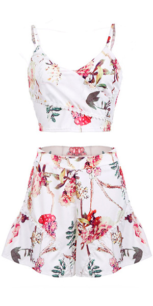 Including a v-neck sling tops and a high waist shorts. Floral print pattern design makes it look more