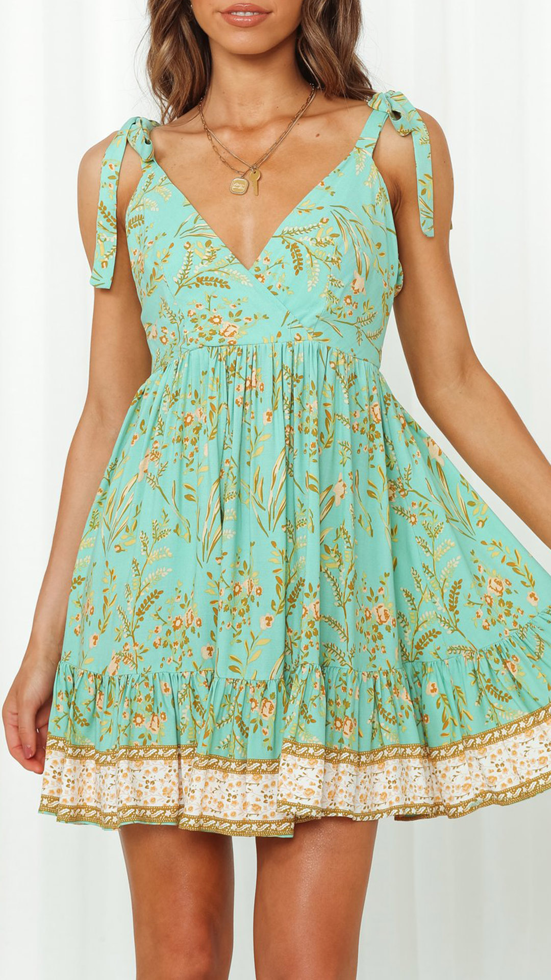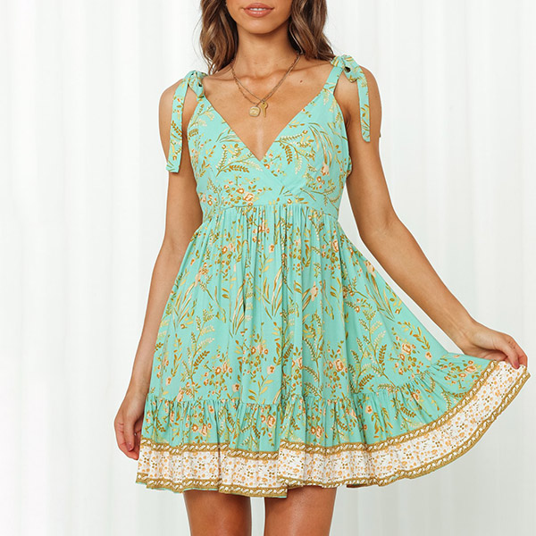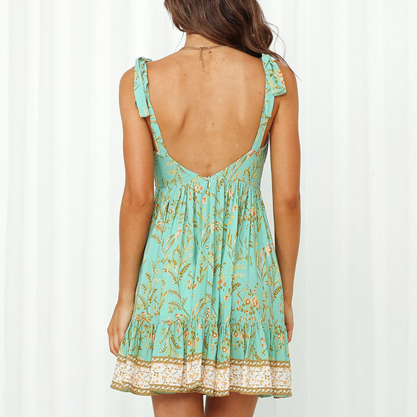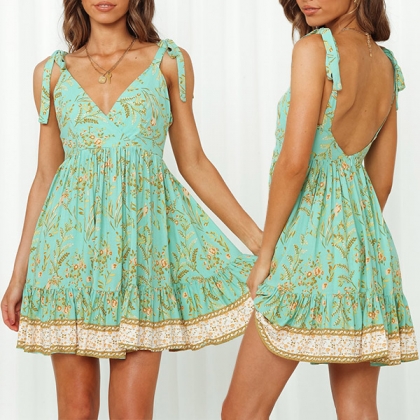 This dress is sure to turn heads with its beautiful print and figure-flattering silhouette. Made from high-quality materials, self-tie shoulder strap and backless details, this chic dress would not only bring you a comfortable wearing, but also add some sexy vibe.