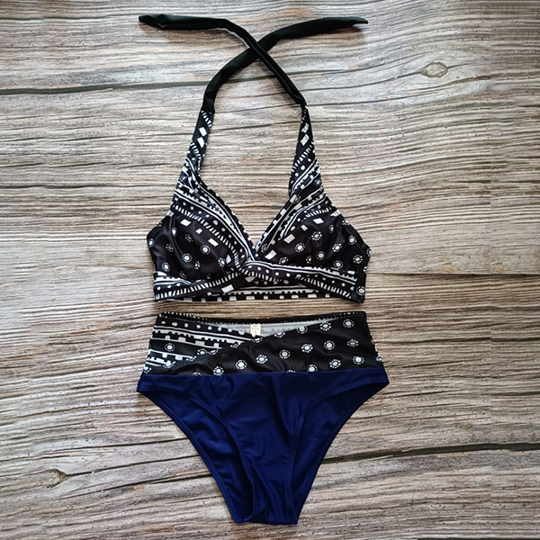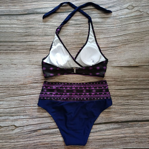 Fashion Floral Printed Bikini Set Consist of Halter Bikini Top and High Waist Bikini Bottom